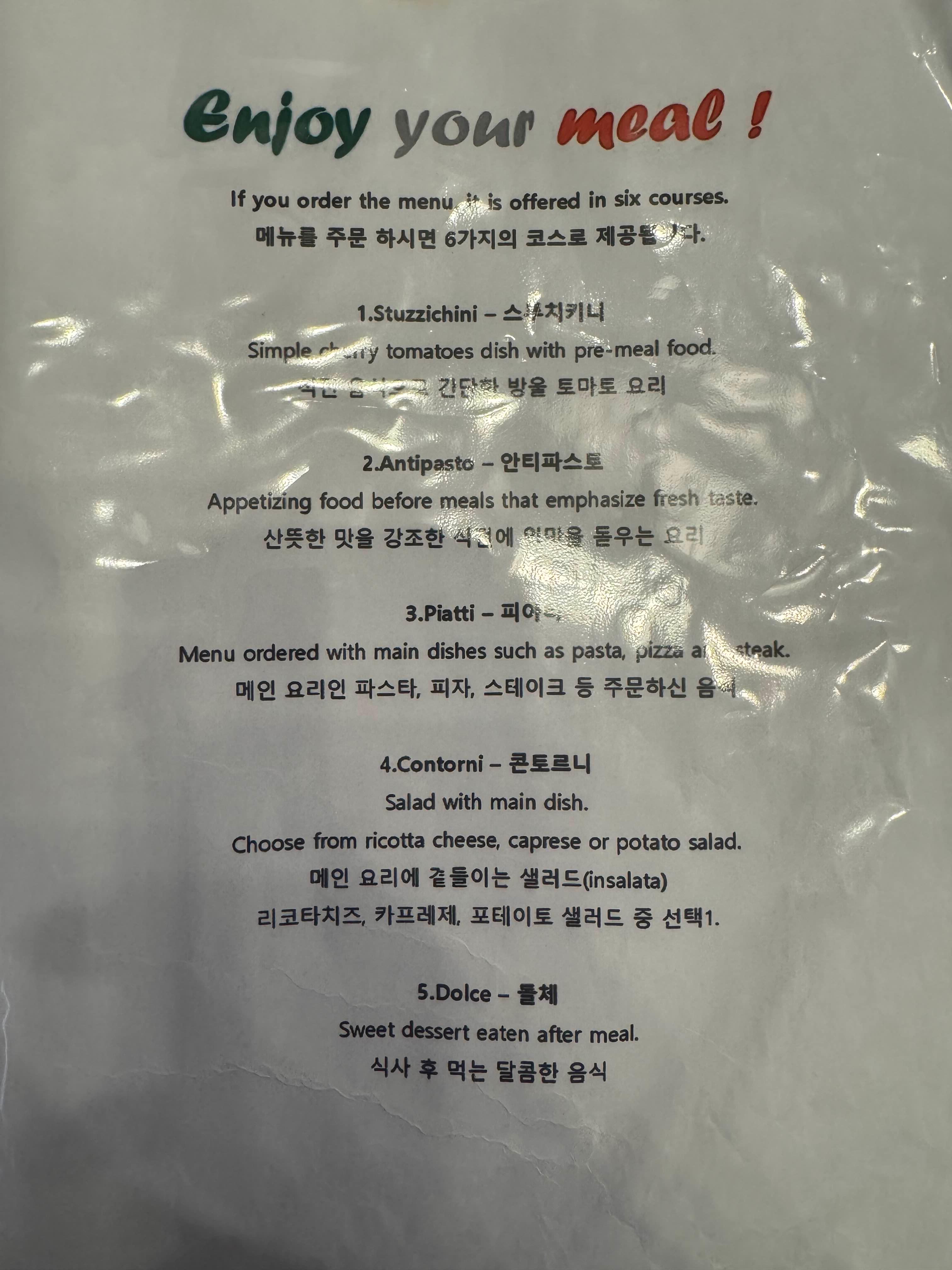 메뉴 주문 후, 6가지의 코스로 요리가 제공 됩니다 !